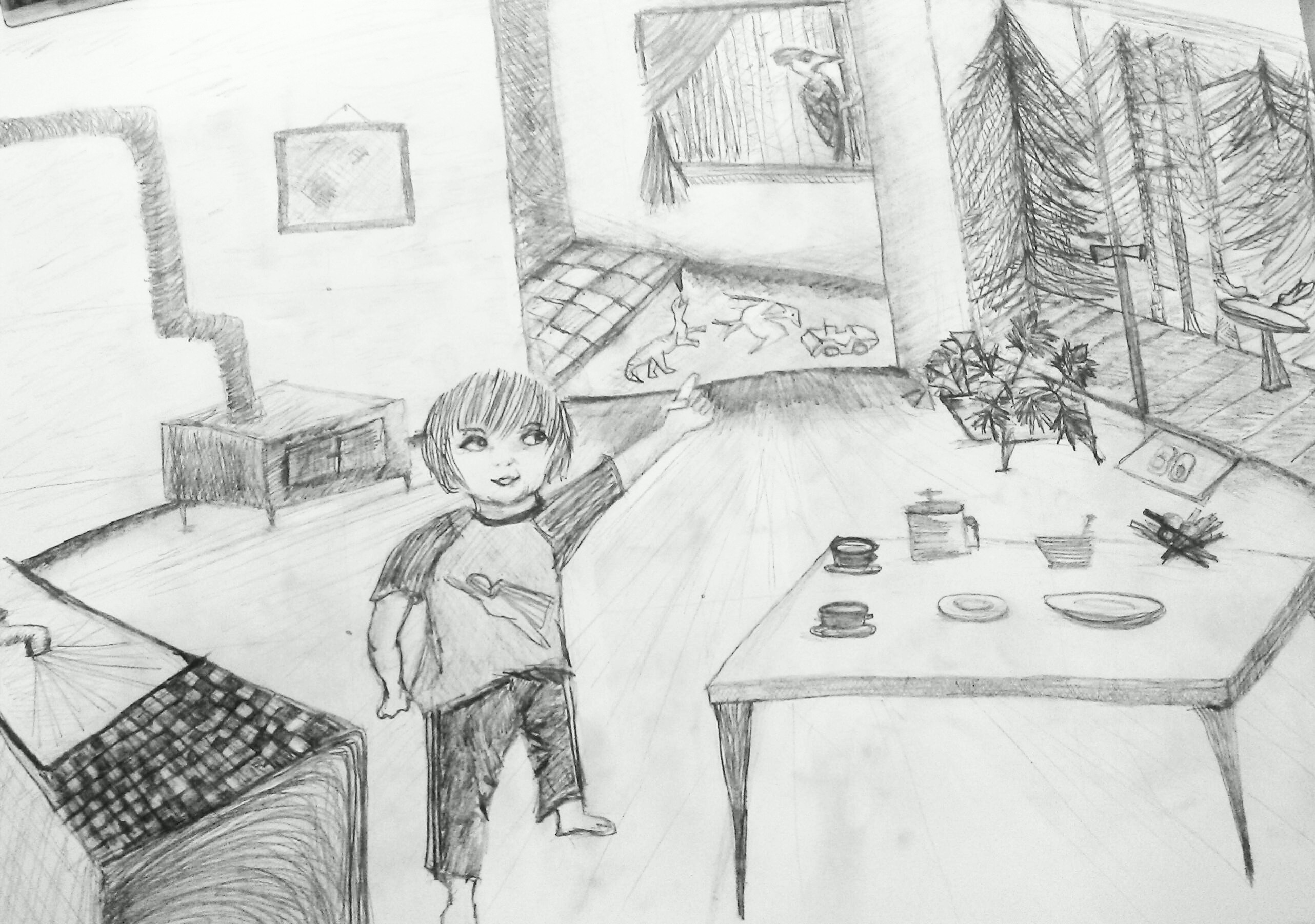 On Sunday Huck came running into the room saying “I have something very important to show you”. We followed him to the window. And indeed, something very important was there for us to see. A huge woodpecker was outside going to town on chunk of wood. He cut into it as if it were butter. After digging in he’d pull his beak from the wood and spit out shards. His beak seemed enormous and sharp His body preposterously gigantic for a woodpecker. We were transfixed. Stephanie gathered Huck in her arms to go see the bird outside. By the time I went to join them it was gone. No one even thought to get a camera. Later we looked at the drawings in the field guide and identified it as the Pileated Woodpecker.