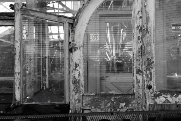 I took an ice cold bike ride out to 25th and 5th Ave in BK to photograph the Weir Greenhouse. It’s a landmarked but very dilapidated victorian era commercial greenhouse. The photos are for my The Field Guide to Office Plants. Though it is now in the possession of Greenwood Cemetery it retains the atmosphere of hasty abandonment. Remarkably, inside is a large tropical plant. Dried in its pot. Would it crumble to dust if touched?