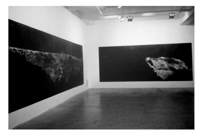 Beautiful chalk drawings at Marian Goodman Gallery. These drawings were originally installed in a building starting from an upper floor and lower floor. The sequence follows the glacial peaks of the Hindu Kush down to the Kabul river that swells and floods with the melting snows. Downward gravity of the installation from one floor to another and the narrative of the flow must have worked nicely. In the gallery they are installed north to south which probably doesn’t have the same effect. But they are impressive just the same.
